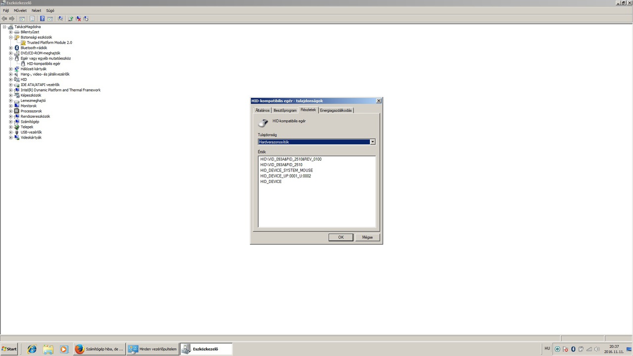 Az a baj, hogy az eszközkezelőben nem a HID egeret látja. Vagy rosszat lát.