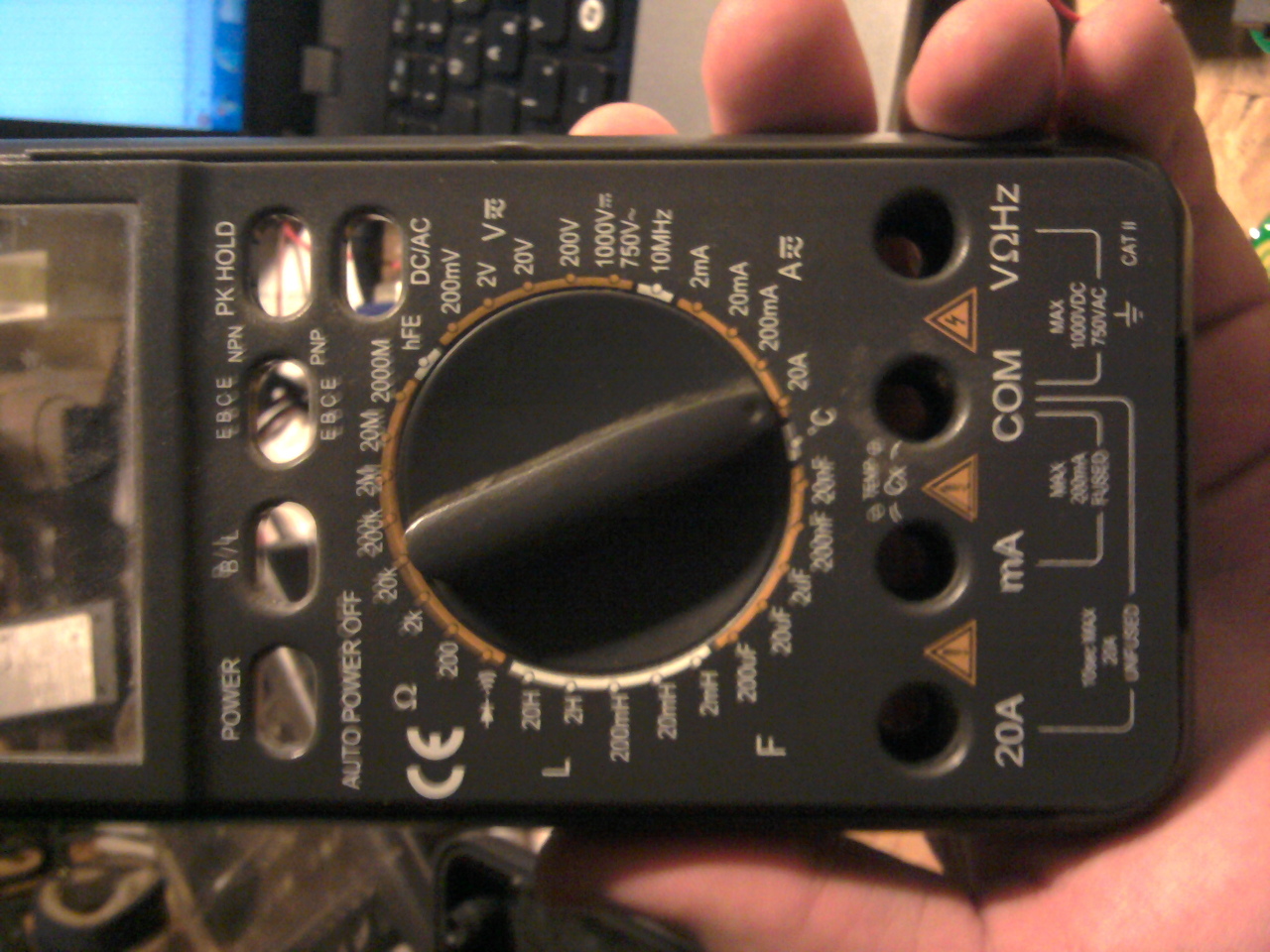 ![]() megfordítottam és annyi változott hogy a kijelzés marhaságokat mutat 12V dc helyett 3,99V a 10Ω helyett 1Ω 26KΩ helyett 9,22KΩ 20KΩ méréshatárnál 200KΩ méréshatárnál 14,8KΩ a 26KΩ ellenállás Kondit nem mér 20nF méréshatárnál 11,75 pár tized eltéréssel 200µF méréshatárban 115,6 20mH mérésnél 11,35 és 20H nál is 2mA ,002 20A es határnál 0,02A látható