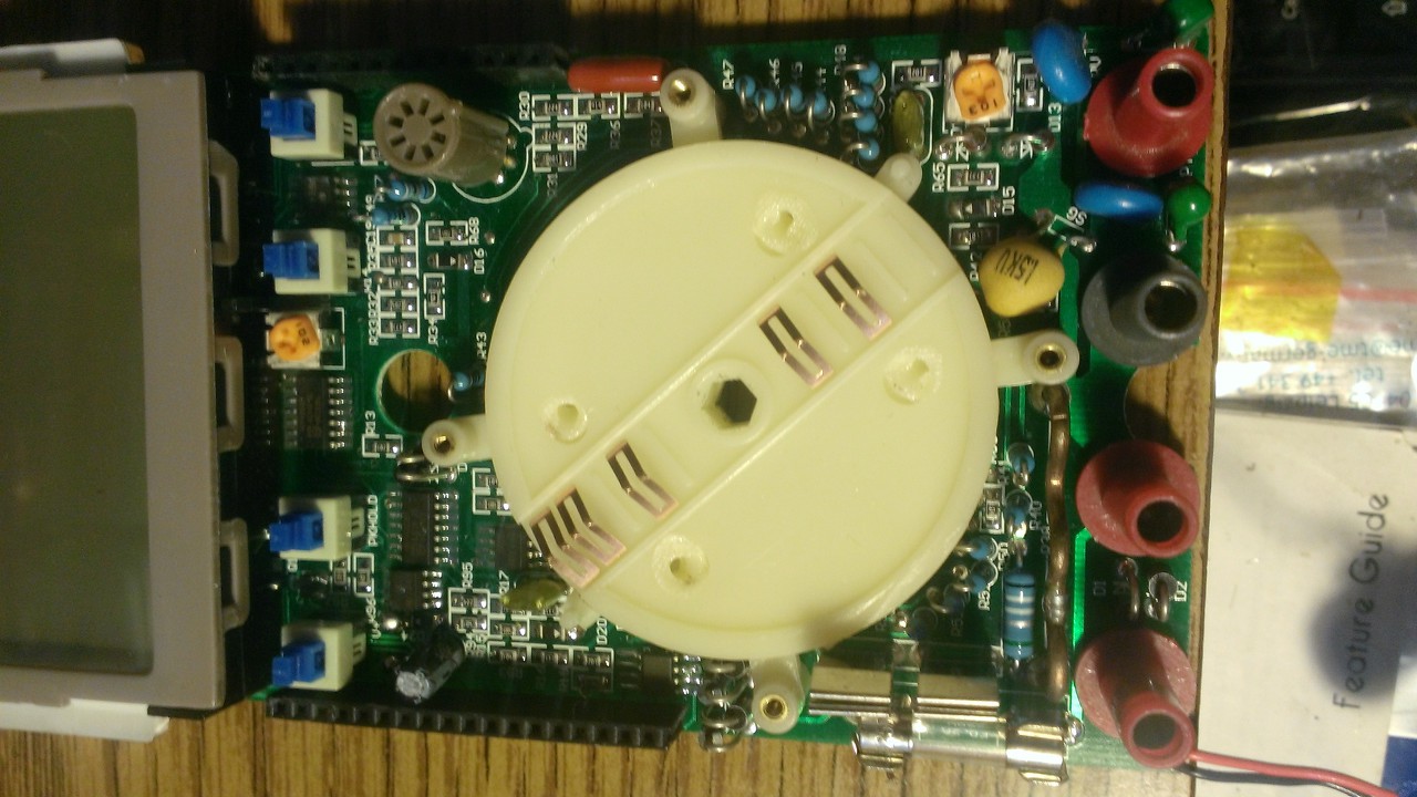 A kis panel és a forgókapcsoló felső része csak a tizedespontot és a kijelzett szimbólumokat kapcsolja, enélkül is működik (ha kell próbálgatni). A leírásod alapján én első körben rosszul összerakott forgókapcsolóra tippeltem volna, de gondolom ezt átnézted a képek alapján. Ha rossz pozícióban van egymáshoz képest a forgókapcsoló és tekerőgomb az is okoz furcsaságokat, de ez egyből kibukik a kijelzett szimbólumokon. Így mást nem nagyon tudok tanácsolni mint az alkatrészek átnézését. Le kellene szűrni hogy az UMF7108 jó-e. Meg tudnád nézni nekem az R58 kódját?