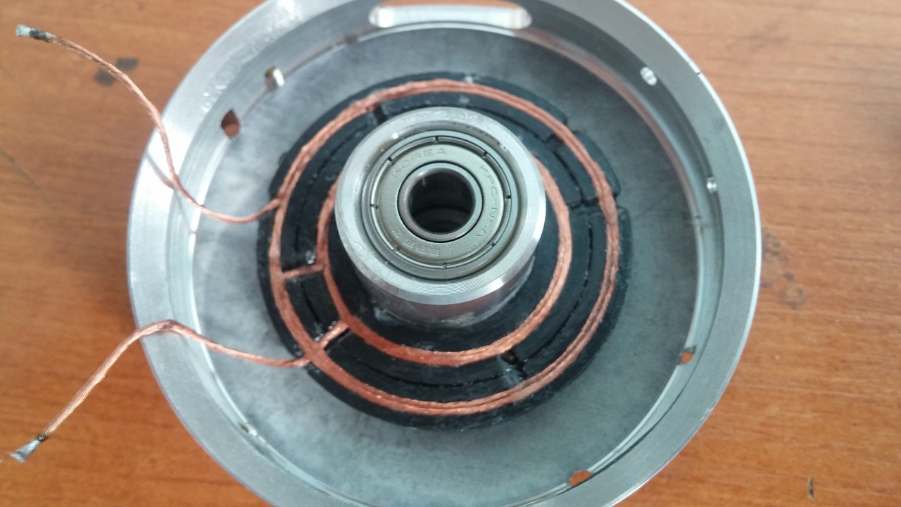 Kissé vastag lett a litze az volt a baj szerintem.Persze a tömörrel is meg lehet tekerni csak a litze jobban kezelhető a kivezetéseknél lehet szépen igazítani.A hézagot nyugodtan meg lehet növelni pár tizedet ha szükséges (egy kis alátétet teszel a tengelyre) mert nem fog sokat változni a hatásfok a W-Power esetén.