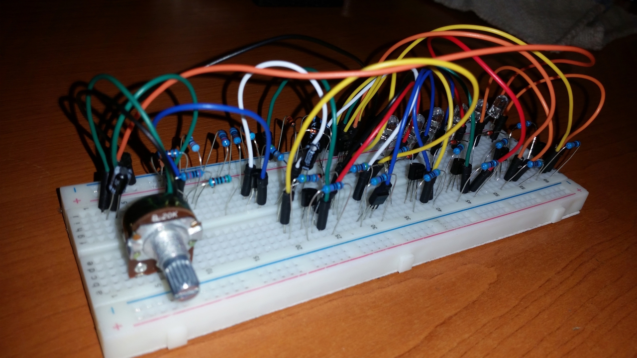 68Ohm helyett 10 Ohm-osat hatszáltam, ez nagyban feljavította az erősítést! De csajnos csak 9 leddel tudtam tesztelni, mivel több sajnos nem fér rá a tesztnyáklapra. Akkor 12 Voltról valószínűleg nem is fog felvillanni mind a 21ledem ?