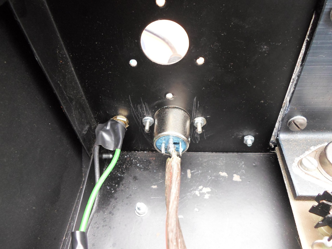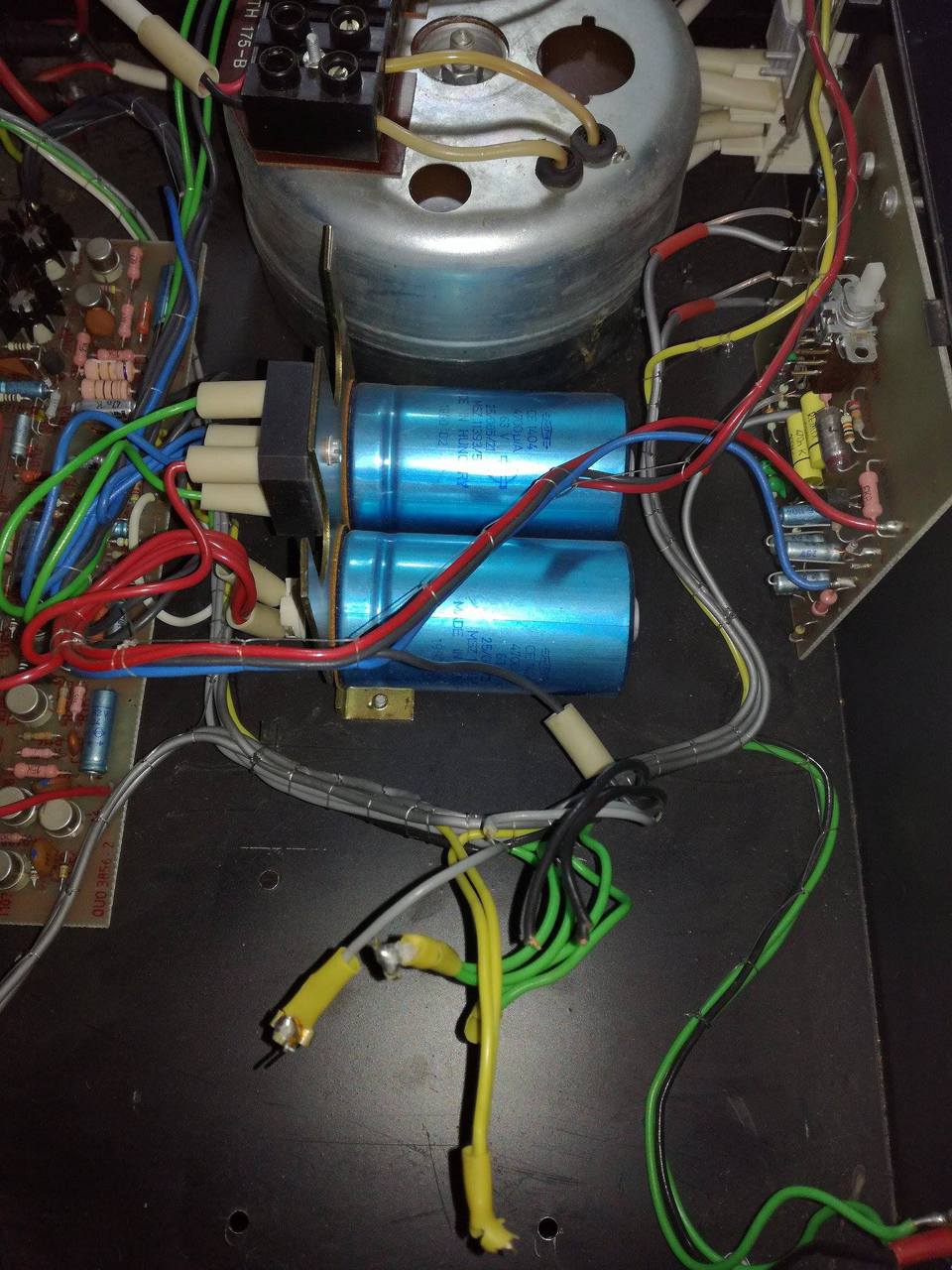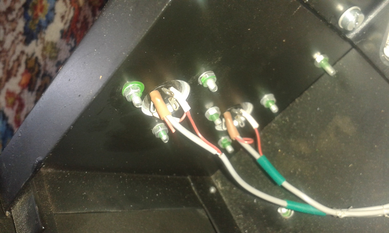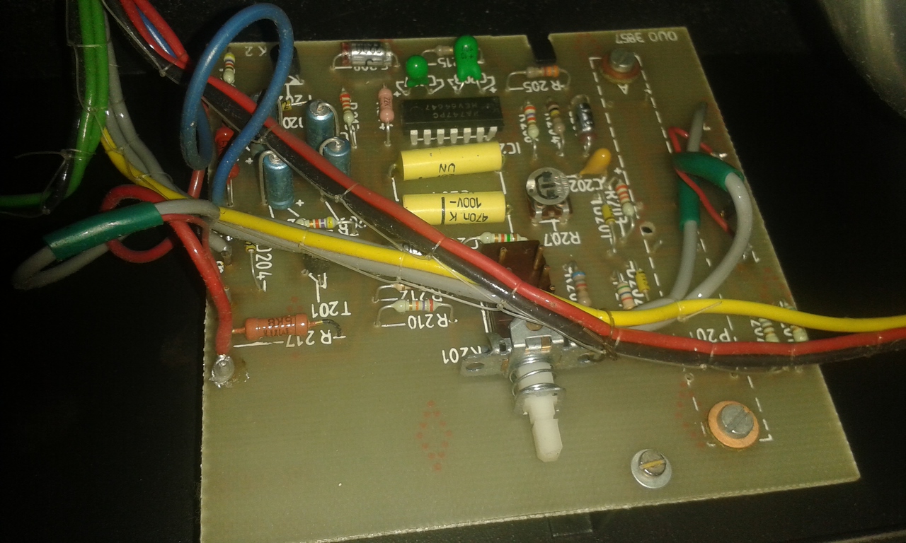 Kép a végfokról. Itt ugye a piros és a mellette lévő vékony sárga a jel,a nagyobb sárga a kimenet,a mellőle lejövő fekete megy a központi gnd-re. A fehér viszont nem tudom hova ment.