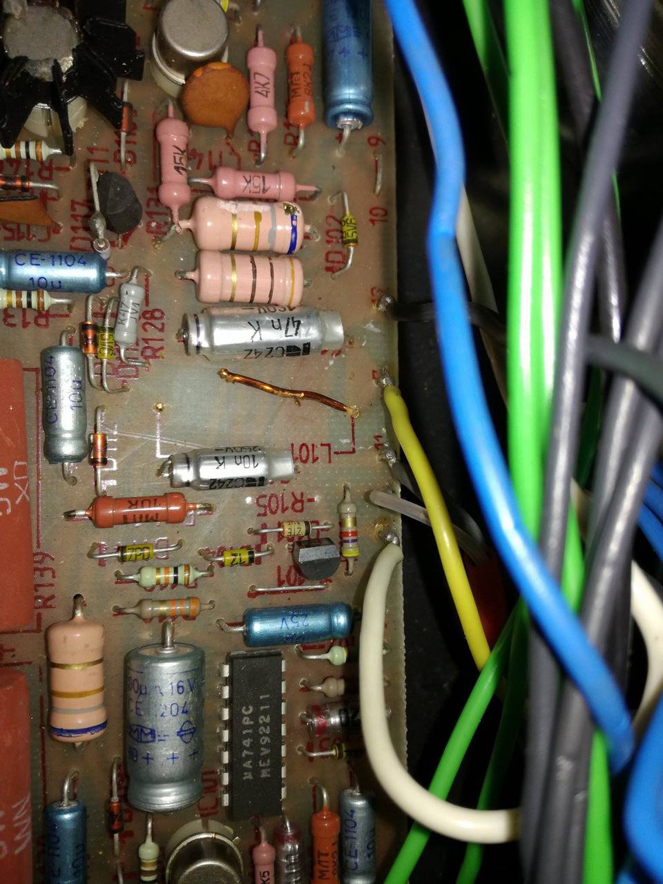Készítek, holnap feltöltöm. Semmi különleges látványos dolog nem látszik, a két jobboldali végfok tranzisztor cserélve volt, szakadásnak, forrasztási hibának nyoma sincs