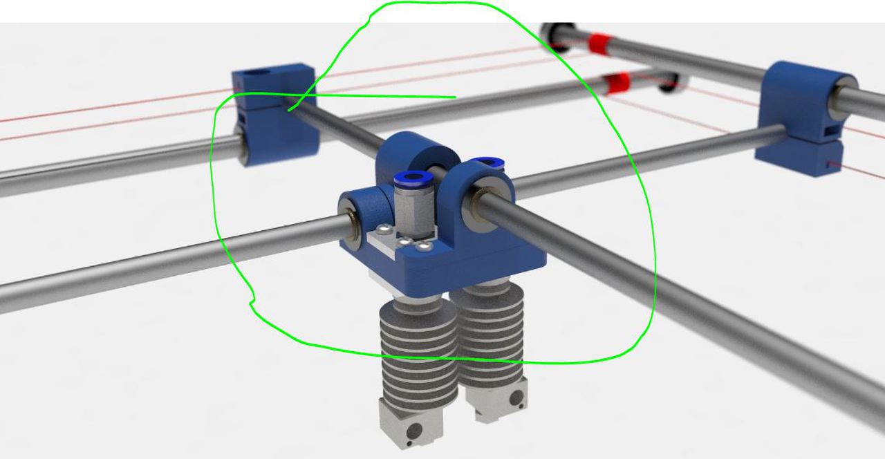 A nyomtató egy Prusa i3 rework. A leírásában is párhuzamosan vannak kötve a motorok.