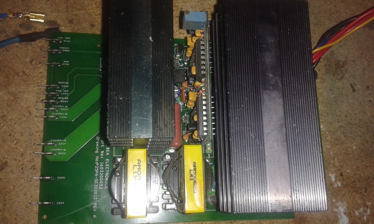 Van egy ilyen csodás PFC! Csöppet zárlatos a lelkem. Ez egy minebea 500W 50V táp PFC-je. Biztosíték elszállt, NTC is megsínylette a zárlatot, de csodával határos módon csak ledurrant az oldala és még működik. Részekre bontás után kiderült az a PFC-ben van a hiba, mert a full-bridge invertert lecsatolva is zárlatos. Van egy segédtápja, egy VIPer20A-val, azt még nem tudtam tesztelni, viszont ha a segédtápot kívülről adom neki a GATE-eken van jel.FET-ek jónak tűnnek. Ami gyanús az a kettő közti minimális eltolás. Persze lehet, hogy a vezérlés később állít rajta, nem tudom az az IC hogy működik. Ábrán látható. A vezérlő panelen 2db Fujitsu FA3624P ez valami SMPS ic, és hozzájuk 1-1 HEF4046BP PLL IC is tartozik. Valaki látott már ilyet? Merre keressem a hibát? A hozzászólás módosítva: Szept 2, 2016