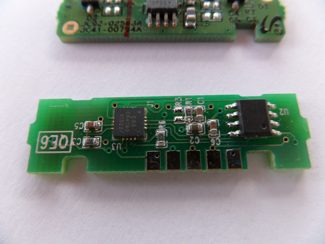 Kaptam egy nem egészen 2 éves Samsung SL-C410W színes lézer nyomtatót, amiből a fekete kifogyott teljesen, a többi szín pedig 4-5% van. Vettem belevaló tonerport és feltöltöttem a tonereket (CLT-406), de a nyomtató a fekete kivételével, (amiben chipet is cseréltem) nem jelzi a töltöttséget, maradt a 4-5%, és erre figyelmeztet minden nyomtatásnál. Attól tartok, le fogja tiltani a színes nyomtatást, hiába vannak teli a tonerek. Az utántöltéssel gazdaságosan használható lenne a nyomtató, a 68g fekete tonerpor 1067Ft A 45g-os színek darabonként 1694Ft-ba kerültek. A beszerzési forrásban szívesen segítek, ha valakinek kell, sokfajta nyomtatóhoz van szinte mindenük. Viszont a fekete toner chipje több mint 3000Ft volt, így azért már kissé húzós lenne egy egy töltés... Lefényképeztem a chipeket, és arra lennék kíváncsi, vajon mik is ezek, mert eddig nem sikerült beazonosítanom. Úgy gondolom, mivel a neten elérhető a reset software, csak elég drágán, valami megoldással lehetne törölni a memóriákat a tonereken vagy az alaplapon. Erre keresek megoldást, ötletet és segítséget, mert szerintem ez nem csak engem érinthet. A képeken látszok az eredeti fekete és kék toner chipje, valamint az új chip a fekete tonerbe. Előre is köszönök minden hozzászólást, ami a megoldás felé viszi a topicot.