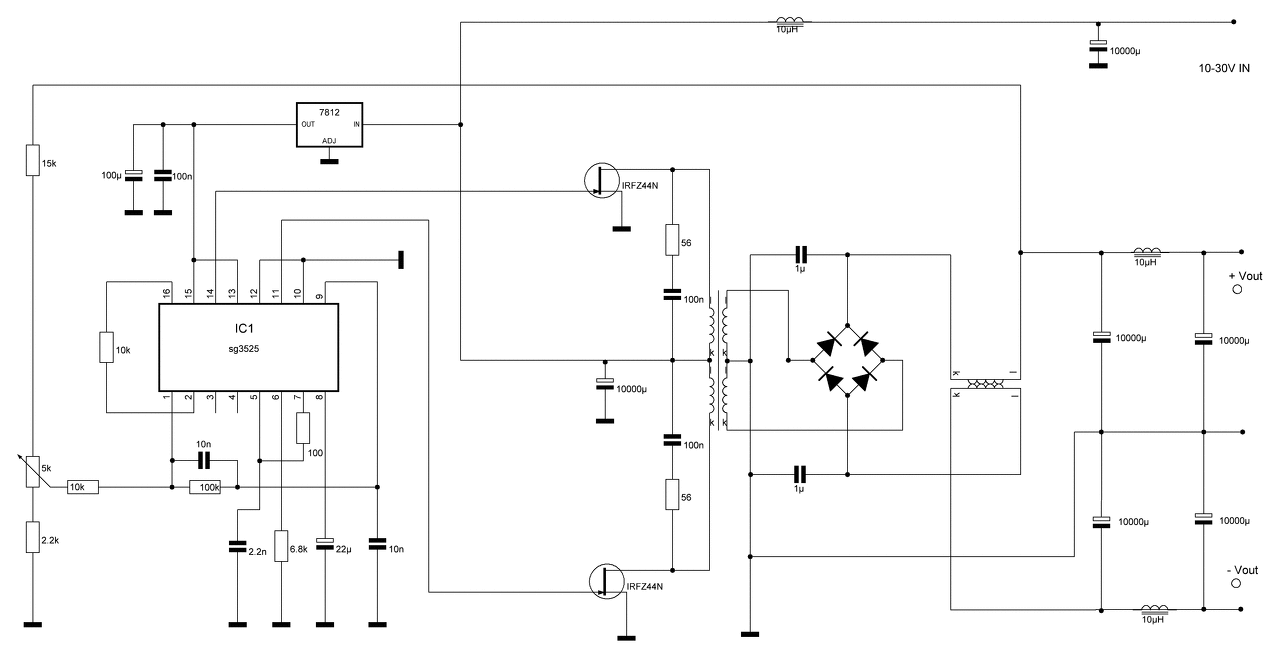 Oké, azért nem vagyok vele teljesen tisztába, az SG3524 IC 11,14 lábán ellentétes fázisú jel jön ki. Ha jól gondolom amit "proli007" berajzolt az csak az egyik FET-re vonatkozik, de melyikre a 11-es vagy a 14 lábon lévőre. Továbbá , kérdezném, hogy a másik FET-re npn-es vagy pnp-s tranyó kell, mivel ellenkező fázisú a jel és akkor mi a helyzet a Zéner dióda írányával? Vagy mindkettőre vonatkozik a kiegészítés egyformán, és hülyeséget írtam ?