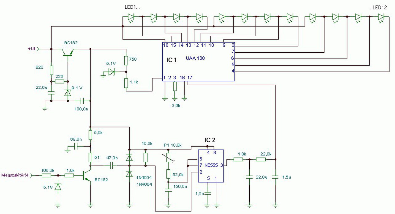 - Nálad ha Hall lesz, nem kell ennyi hókuszpókusz. A Hall nyitott kollektoros kimenetű és tulajdonképpen így az első tranyó helyére mehet. - A kollektor komplexumra (RCR) sincs szükség, elég egy 2,2kohm-os kollektor ellenállás a Hall-hoz. A 47nF inkább 100nF legyen. A két dióda is szükségtelen. Inkább a GND-re menő dióda helyett is tegyél egy 10kohm-ot. - A kimeneten nem differenciáló tag van, hanem integráló. (Differenciáló tag a tranyó és 555 közötti 47nF/10k.) De az is felesleges, egy előtét ellenállással kötheted a műszert a kimenet és a GND közé. (Integráló tagok azért vannak, mert azok képzik a jel átlagértékét. A Led-es kijelzőnek nincs tehetetlensége, így mutatott érték helyett csak kalimpálna. Analóg műszernél a műszer tehetetlensége fog átlagolni. Feltéve, hogy elég sűrű jelet tudsz előállítani a fordulatból. Ha nem, akkor szükség lesz az integráló tagra, de egy meghajtó fokozatra is utána, mert úgy már nem lesz meg a műszerhez szükséges áram. Vagy melák kondikat kellene használni.) A hozzászólás módosítva: Szept 18, 2016