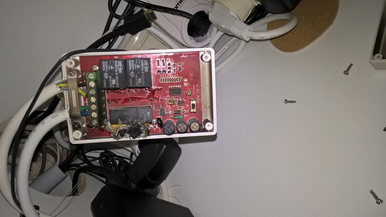 Nem látom teljesen reménytelennek a javítást. A mi eldurrant, az egy (valószínűleg nem megfelelő minőségű) kondenzátor, ami a tápfeszültség előállításáért felelős. A mellette lévő feketét nem tudom mi lehet.
