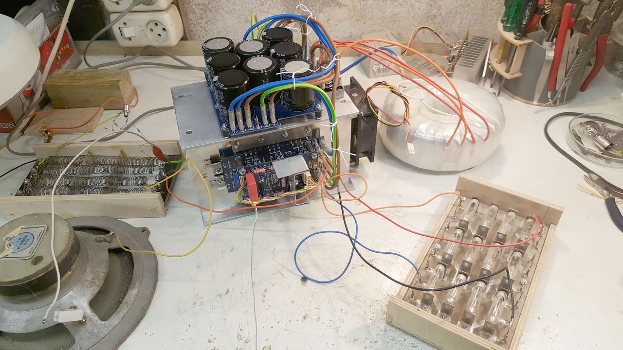 Összehuzaloztam a táprészt, ami már alkalmassá tette az élesztésre. Ezt izzós áramkorláttal végeztem, ami egyenlőre ki sem vettem a tápkörből.