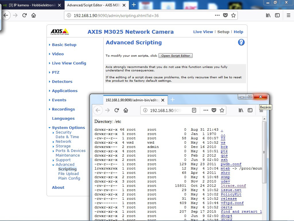 Axis kamera szkripteléshez ért valaki? Szeretnék egy olyan szkriptet, ami a kamera újraindításakor küld egy be parancsot az "output"-ra. Elvileg ennek alapból így kéne lennie, de sehogy nem sikerül elérnem.