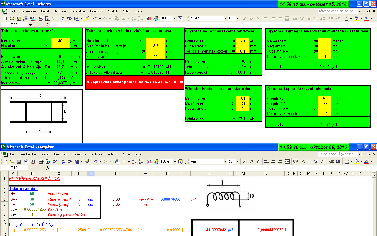 Azért nem pontos (nem lehet pontos) semmilyen egyszerűbb számolóka, mert a légmagos tekercsnek van szórása, ami szintén a mechanikai kivitelezés függvénye. Ezért inkább tapasztalati úton felvett diagramokkal célszerű számolni.