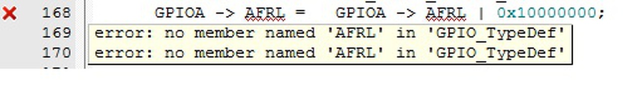 Igen köszi értem már mire gondolsz de valamiért nem fogadja el az GPIOA -> AFRL hivatkozást mondván baja van az AFRL-el