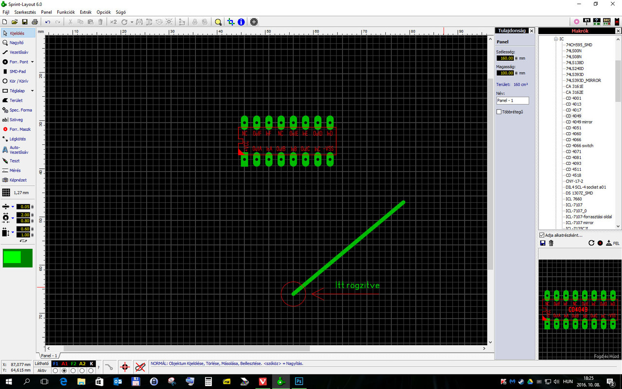 Segítségeteket szeretném kérni. Eddig ExpressPCB nyáktervezőt használtam, főleg az egyszerűsége miatt. Próbálok átállnia Layout tervezőre, de nem találok benne egy nagyon hasznos funkciót. Egy vezeték egyik végét rögzítem a másikat pedig mozgatom tetszés szerint. Érthetőség kedvéért mellékelek egy képet is: Előre is köszi a segítséget. ![]() Üdv. A hozzászólás módosítva: Okt 8, 2016