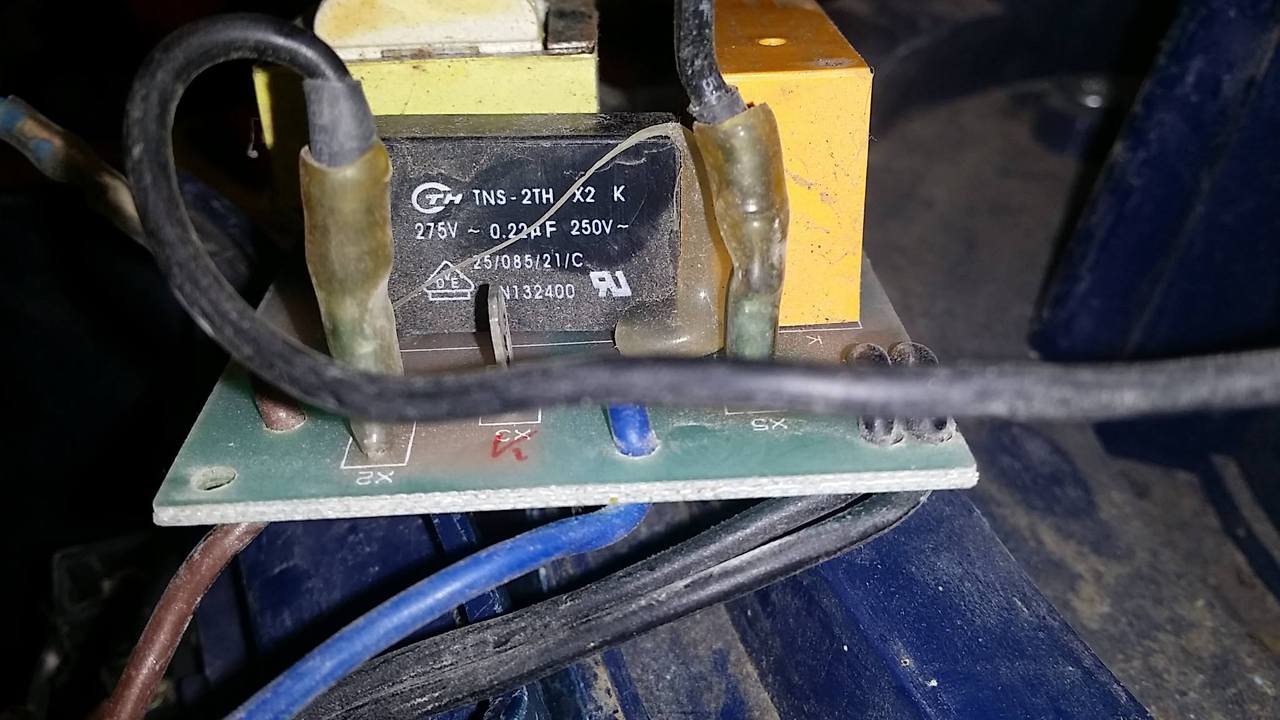 Nem valószínű, hogy kondenzátoron keresztül indul (feszültségcsökkentés). Az zavarszűrő, anélkül is működik, csak zavarja környező elektronikus készülékeket. Kiveszed a hibásat, és bármely villanyász boltban kapsz másikat.