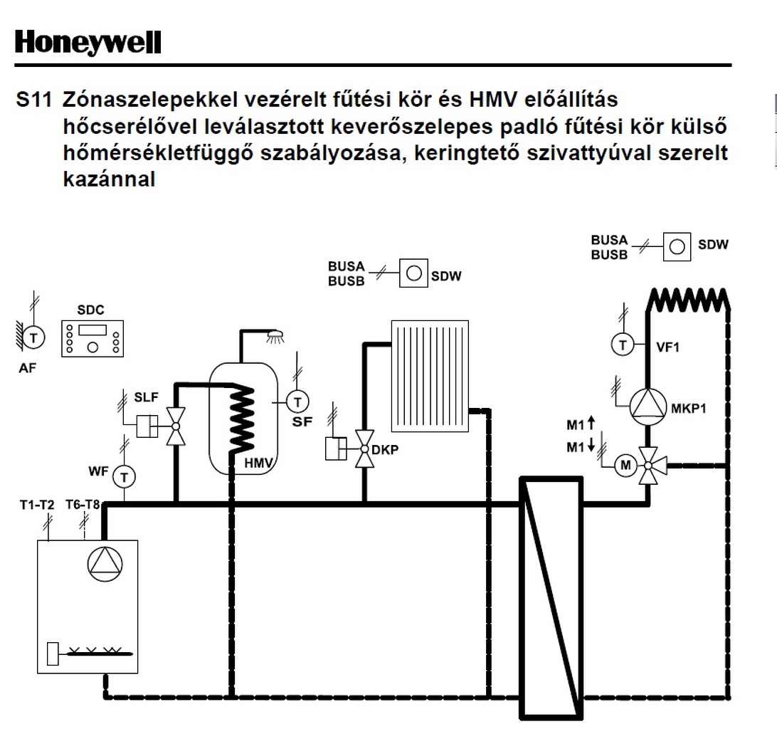 Házat építettetek és lassan el kell dönteni a fűtési rendszert. Az lap dolgok azért adottak, de várom a kivitelezőtőtől/fűtésszerelőtől a rajzot, én meg okosodok a netről... Ami adott, hogy a földszinten padló fűtés lett letekerve. Az emeleten radiátorok lesznek (4 szoba+fürdő). 2 termosztátot szeretnék, a két szintre egy-egy, és a radiátorokat nem szabályoznám külön-külön. Értelmes keretek között egyszerű rendszert szeretnék. Az emeleten vagy egy kis gépészeti helyiség. Fűtő kazán (Ariston) és egy 200 l-es HMV tartály a kazán mellett. (ha a pénz engedi pár éven belül a kollektor felkerülne a HMV-hez még ) A szerelő első körben hőcserélős rendszert ajánlott, én pedig a neten olvasgatva, pár boltba bemenve/kérdezgetve azt gondolom, hogy hidrováltós rendszer jobb. A legjobb rajzokat eddig a Honeywell példatárában találtam. Onnan vettem ki kettőt, ami nálam lehetne. De pár kérdés lenne: Hőcserélős rendszerbe: amikor HMV-et szeretnék, és elindul a kazán szivattyúja, akkor hűtés is egy kicsit "megy"? Vagy a zónaszelep teljesen lezár? Például egész nyáron zárva van itt a szelep, vagy nekem kell kézzel elzárnom? Hidrováltos rendszerbe: lehet a hidrováltót "hátrébb rakni", hogy a radiátoros kört, vagy a HMV-es kört még kazán szivattyúja vigye? Sokallom a plusz 3 szivattyút a hidrováltó után. 2-tővel megoldható? Mekkora problémát jelent, ha a radiátoros és a padlófűtéses víz keveredik? Gondolok itt a radiárokból jövő szennyeződésre. Mert a hőcserélő fizikailag elválasztja a két rendszert, addig a hidraulikus váltó nem. És végül mekkora a valós árkülönbség a két rendszer között? Szerintem max a 3 motor ára, kb 120eFt lehetne a valós, mert hőcserélős rendszerbe van plusszba pár zónaszelep, ami a másikba nincs.