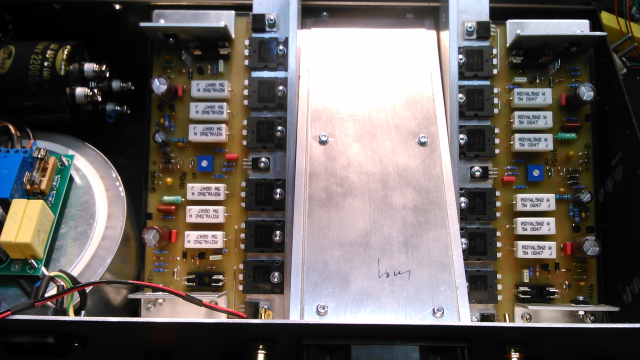 Hasonló teljesítményű erősítőhöz, sok tanácsot, és konkrét útmutatást felhasználva, én ilyen megoldást használok.