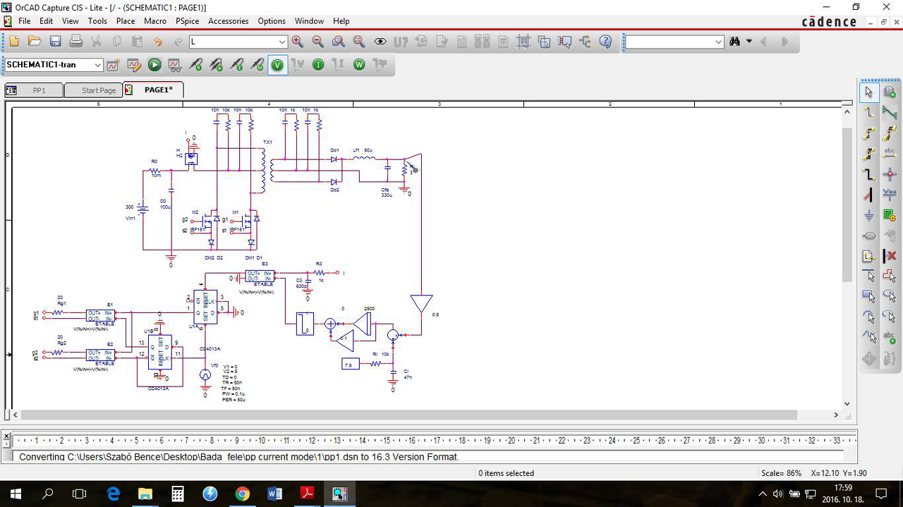 Most egy kicsit összezavartál. Hol szerepel a 4,7 uf kondi? A primer R-C körben van egy 4,7 nF kondi, a VDD és a föld között egy 22 µF kondi. A táp kondija 47 µF/400V. A trafót kivettem a tekercsek között nem mértem átvezetést, zárlat sincs, csak impedanciát tudok mérni, de nincs mihez viszonyítani. 12 V-nál nagyobb feszt sehogy nem tudok előcsalni.