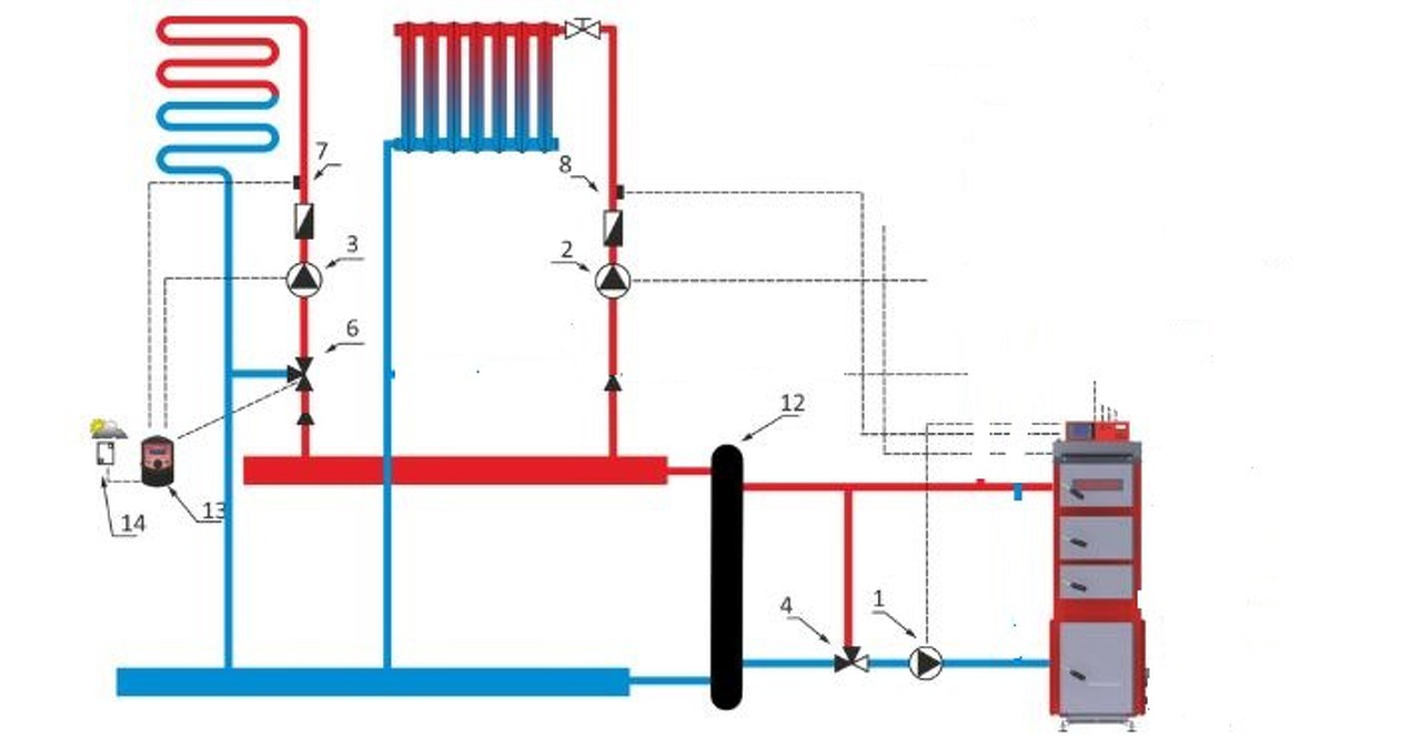 Én azért ezt a rendszert, nem tartom jó megoldásnak,mert ha a radiátoros helyiségekben elég meleg van, és lekapcsol a termosztát, hogyan lesz a padlófűtés működtetve? egy hidraulikus váltó beépítése sokat segítene a helyzeten. Szerintem ez sokkal fontosabb dolog, először ezzel kellene foglalkozni. Na és a két kör (padló-radiátor) egymásrahatásával is kellene kicsit foglalkozni, mert így a két rendszer bizony megzavarhatja egymást!