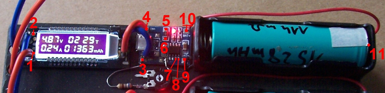 Nyilván van abban is soros ellenállás, említettem is. De én azt hittem, a 4.46V a töltő IC táplábain elég kellene, hogy legyen. De nyilván van annak is valamennyi vesztesége... Ha befejeződött a mostani töltési ciklus, átalakítom kicsit, és meglátom mit mutat nagyobb tápfesszel...