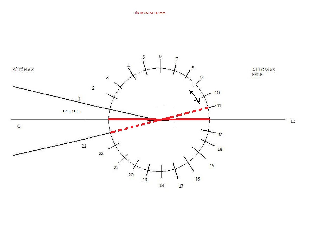 (Update-elt képet betettem): Szóval egy 240 mm híddal rendelkező fordítókorongot szeretnék kreálni H0-ás méretarányban, mely egy háromállásos fűtőházat látna el, egy állomási irányból érkezne a mozdony, amit fordítani lehetne, vagy elhelyezni a fűtőház 3 állásából valamelyikbe.