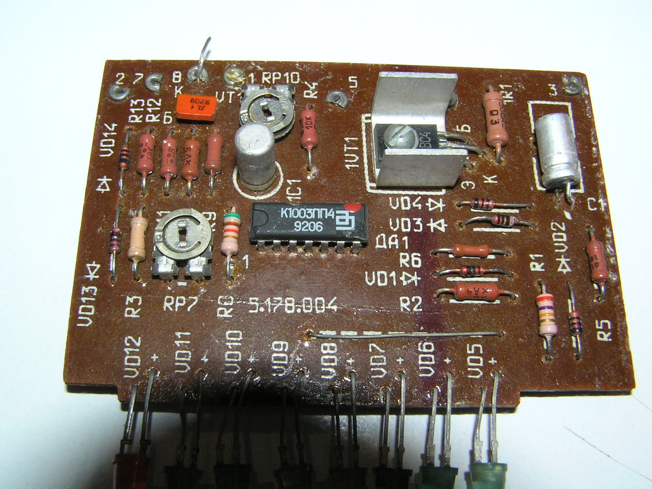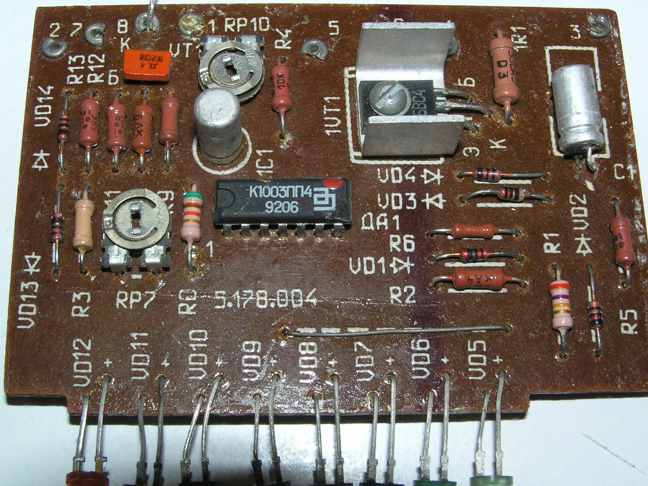 Ami hűtőbordán van tranyó annak a neve oroszul:5BC4 angolul:5VS4 A narancssárga tranyóra pedig ennyi van ráírva: Д 1 alá pedig ezek a számok(tranyón rajta) 920B. Angolul: D 1 920V Ja és ennek volt egy párja és össze volt kötve a kettő.Nem én szedtem szét a kettőt. Meg van még egy teljesen ugyan ijen felépítésű csak más a tranyók neve de a IC ugyan az. A két tranyóé ami bordán van a neve:5ГС1 angolul:5GS1 A kis narancssárga tranyóé pedig:Д 1 alá ez van írva:9205 Angolul: D 1 9205