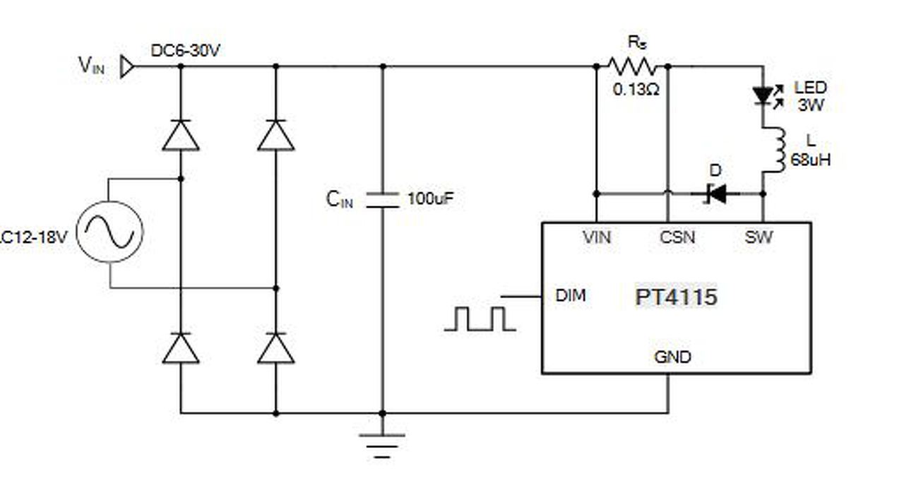 A rajzról a bal oldali 4 diódát lehagyhatod, mert neked már egyenáramod van. A kívánt áramot az Rs ellenállásal kell beállítani. Képlet az ic adatlapjában van.