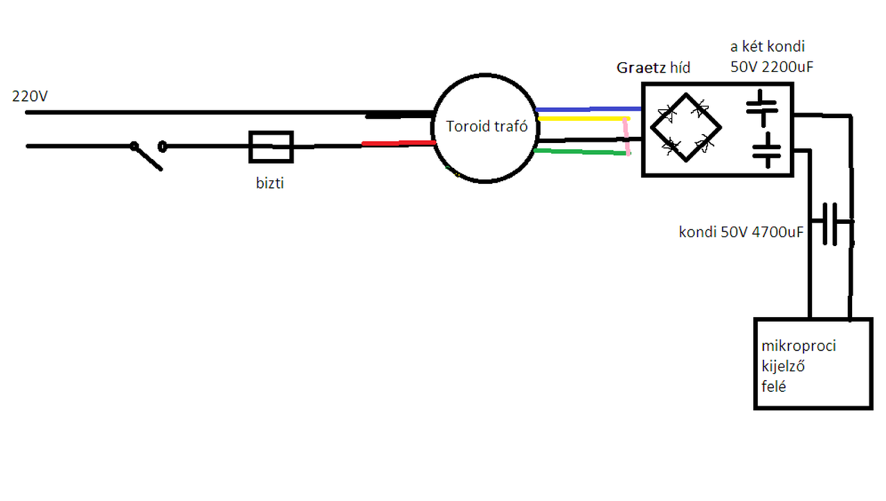 Nekem inkább az lenne a kérdésem, hogy minek bele ennyi, és ekkora kondi? Ha mindegyik párhuzamosan van, akkor az ~9000uF. Egyedül a vezérlésnek kell a stabil fesz, de az gondolom nem eszik 9A-t. Már ha a szokásos 1000µF/A-al számolunk. Vagy a fűtőszál is arról megy netán?