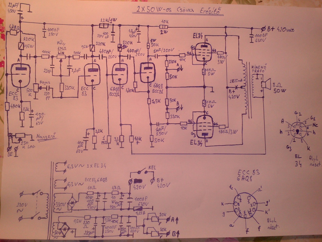 Válassz sima EL34-et inkább! Ez a kapcsolás valami gitár erősítő? Az elején a hangerő szabályzó el van rajzolva. Nekem nem tetszik ez a kapcsolás, szükséged van hangszín szabályzóra? Én 30 éve anélkül hallgatok zenét, és nem hiányzik, rontja a hangminőséget. Minél egyszerűbb egy kapcsolás, annál jobb! A hozzászólás módosítva: Nov 5, 2016