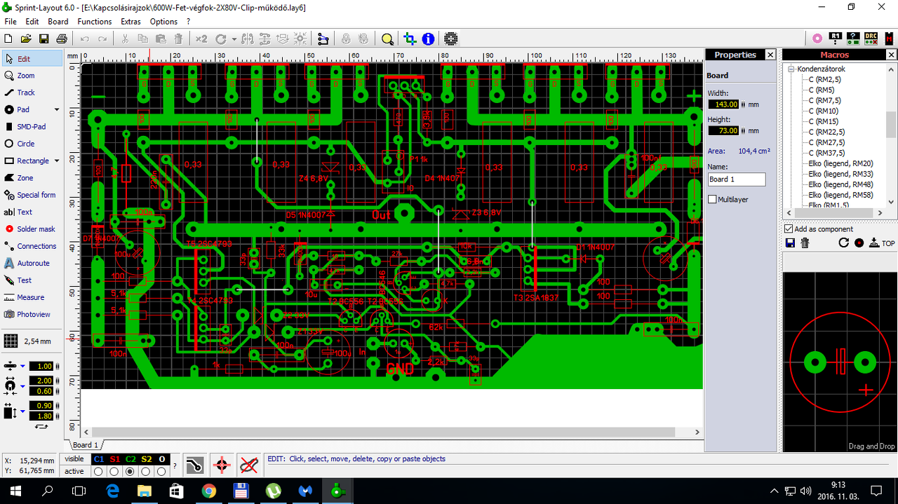 8-omos és 2.1 eredetileg 2x20w+40w terveztem, de elég nehéz TIP142/147 rajzot találni