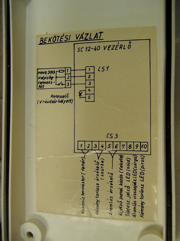 Ahová azt a két fekete szálat kötötték a kazánban, annak a helyére kell majd bekötni a vevőből (1-2 pontokról) jövő szálakat, mert az a vevő reléjének záró kontaktusának a kimenete.