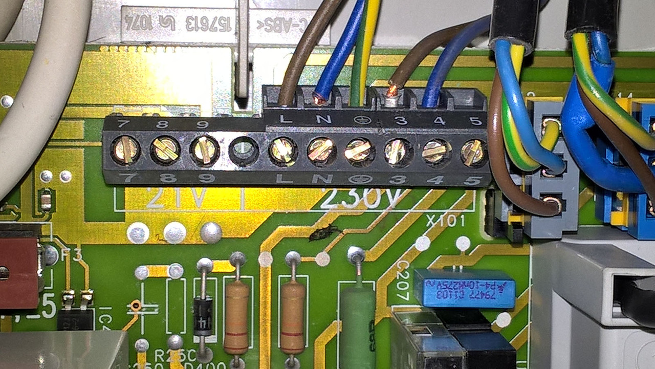 A hozzáértőktől szeretném kérdezni, hogy jól gondolom-e, hogy a Vaillant kazánban a 3-4 pontokra bekötött barna és kék vezetéket kell a Computherm Q7RF termosztát vevő egység 1 és 2 pontjára kötni? Azért kérdezem, mert a mellékelt képen látszik, hogy a régi Honeywell termosztátba 4 vezeték van bekötve a két helyre, ezekből a fehér és fekete vezeték felesleges gondolom. Arról fogalmam sincs, hogy ezek milyen vezetékek, de a kazánba nincsenek bekötve.