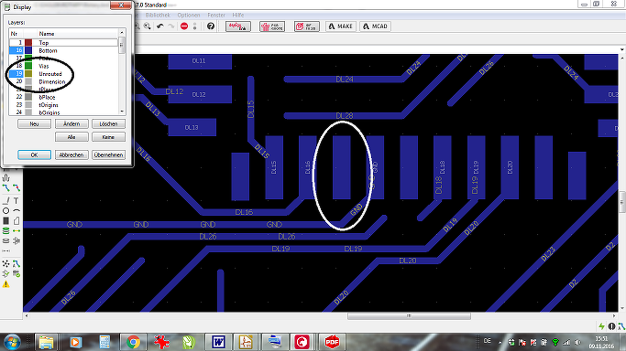 Ráadásul nem látszanak az uj kapcsolatok sem ( a kapcs rajzon hiányzott néhány vezeték, amit utolag rajzoltam be a NYAKon nem jelent meg mint unrouted sárga vonal. Van valahol valami kényszerfrissitö gomb? Az autorouter funkcio is sokkal körülményesebb lett mint volt.