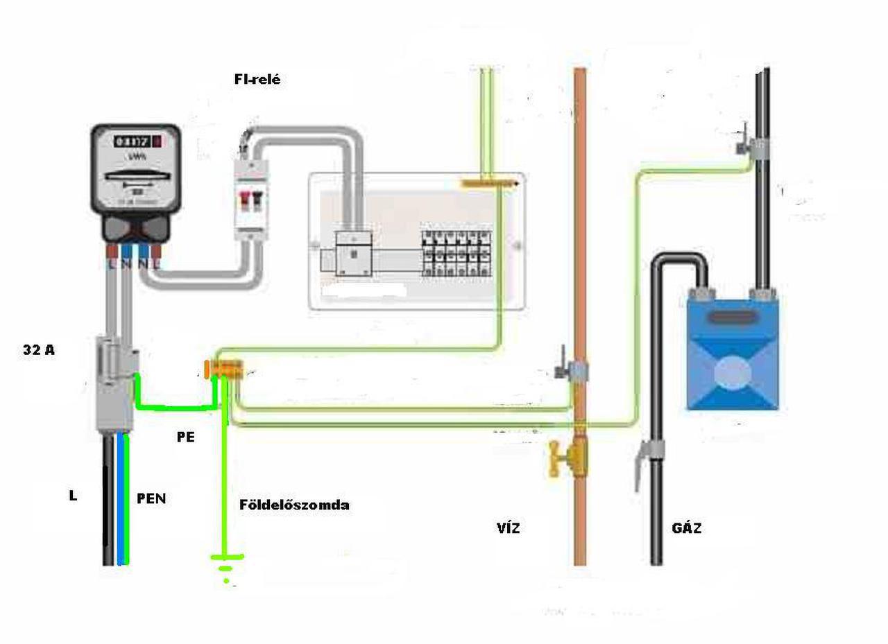 Több rajzon is látom, hogy a vízvezeték hálózatot, és a gázvezeték hálózatot igyekeznek egyenpotenciálra hozni a védővezetővel, és a helyi földelő szondával (összekötik őket egy-egy vezetékkel).