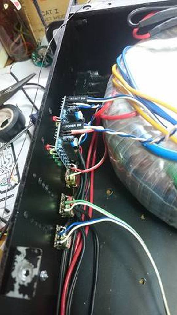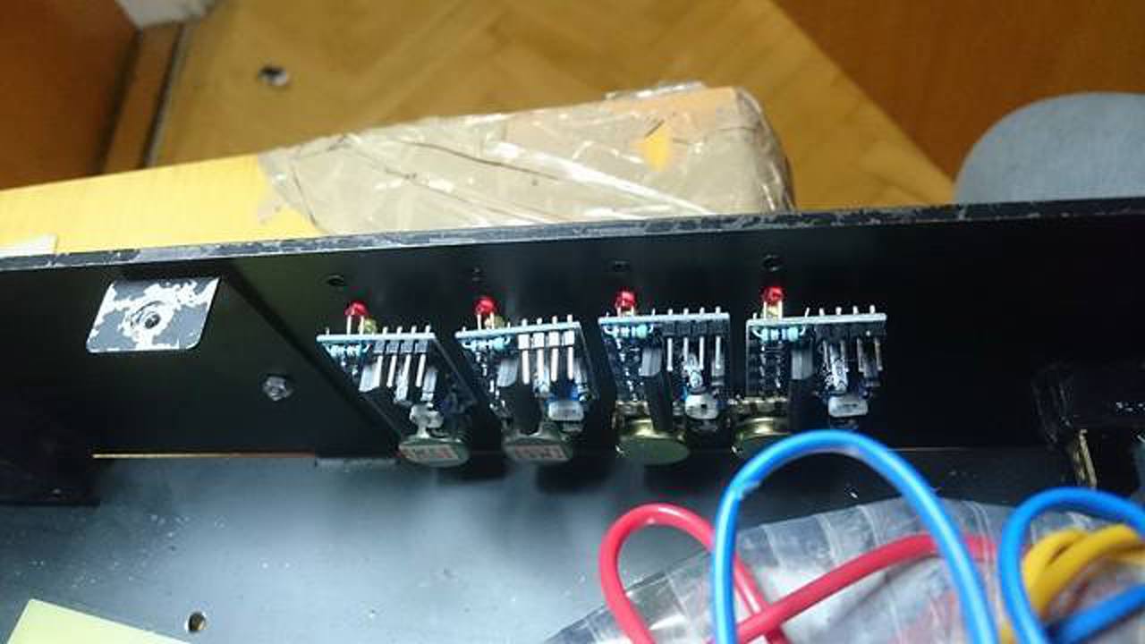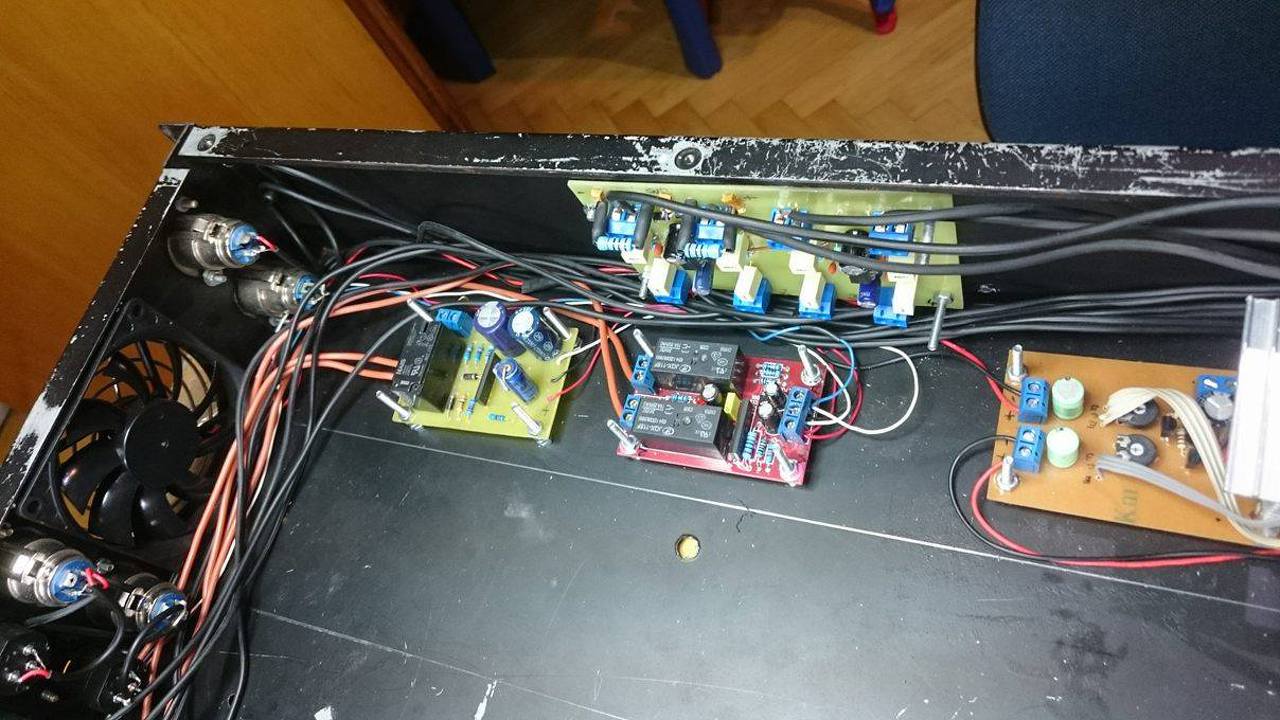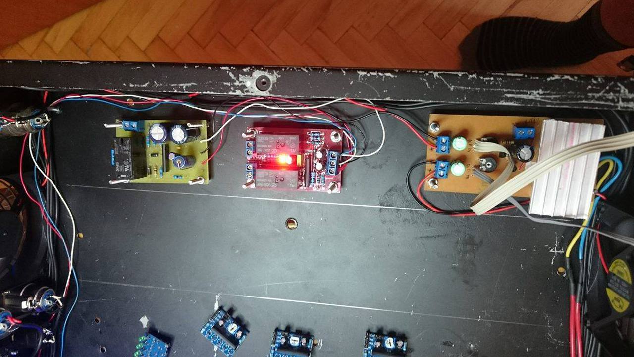 . Quad 405 3 tekercses, átfélvezetőzött megjavított változat. Most a 60W-os trafó megcsapolásról megy, mert vár még nagyobb feszültségű kondikra. A vége 2x110W 100-101Wattra szeretném belőni a védelmet. Kínai koppanásgátló és hangszóróvédelem, kínai távirányítós, motoros potméter. Hobbielektronikás Wijdewen trafó fórumtárstól származó - jócskán átépített panelek, kínai kivezérlésjelző, saját, tranzisztoros meghajtással. A bekapcsoló gombot hosszan nyomva lehet be és kikapcsolni (vagy távirányítóval). A bekapcsoló gomb egyben csatornaváltó is, 4 bemenetet kezel - ez még vár az aranyozott érintkezős relékre. A potméter motoros és megy távirányítóról. Még kap egy szebb forgatógombot. Előlap festésén és feliraton még gondolkodom. És a képek:
