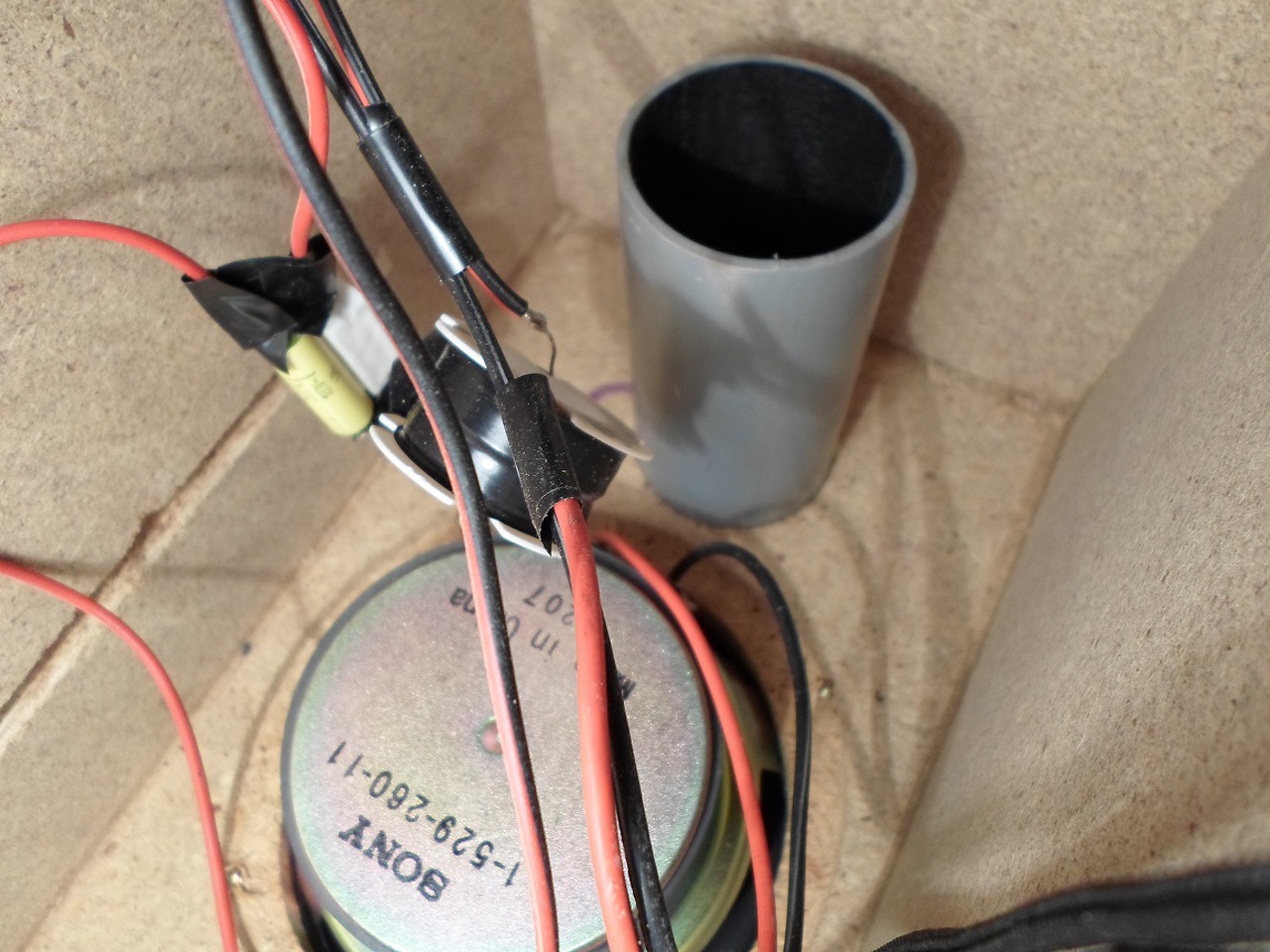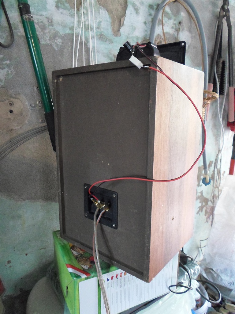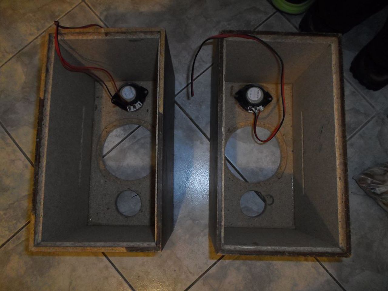 Sziasztok!Most két hangsugárzót alkottam,vagyis meglévő gyári dobozokba tettem hangszórókat ,váltót,csatlakozótálcát stb. Az első egy videoton saphir I doboz,amit 1500 ft -ért vettem üresen jófogásról ,ebbe került egy reflexcső (50mm átmérőjű ,70mm hosszú PVC cső) ,festve lett,majd többszöri hallgatás után kapott egy tölcsért,hogy ne legyen hiány a magas hangokban sem.(tudom,piezo,hát ez volt itthon).A szélessávú egy monacor spm200x/4 ohmos elég jó minőségű hangszóró,meghallgatás után vettem 6700 ft-ért újonnan.A csatlakozó tálca helyét dekopírral kivágtam ,rácsavaroztam.Szerintem jól szól,de nem nagyon akarok vele foglalkozni a továbbiakban.A másik egy komolyabb project,egy RFT szélessávú hangsugárzóhoz jutottam hozzá ingyen üres állapotában.Gondolkodtam,hogy mit lehetne vele kezdeni,és találtam egy sony mélyközepet ami méretben passzolhat a dobozhoz,ezt f.book hangtech. adásvételi csoportban vettem ,darabját 1000 ft-ért.(csak azért írom az árakat,mert szerintem beszédesek)A magassugárzó szintén sony,ezt kemény 300 ft -ért tudtam beszerezni darabját újonnan.A hangváltó adta magát, 047mh tekercs (800 ft), remix 3,3uf kondi, 5w 2,2ohm ellenállás (140 ft).Reflexcsőnek megint a PVC,de most 110mm hosszú lett,hogy miért azt ne kérdezzétek.