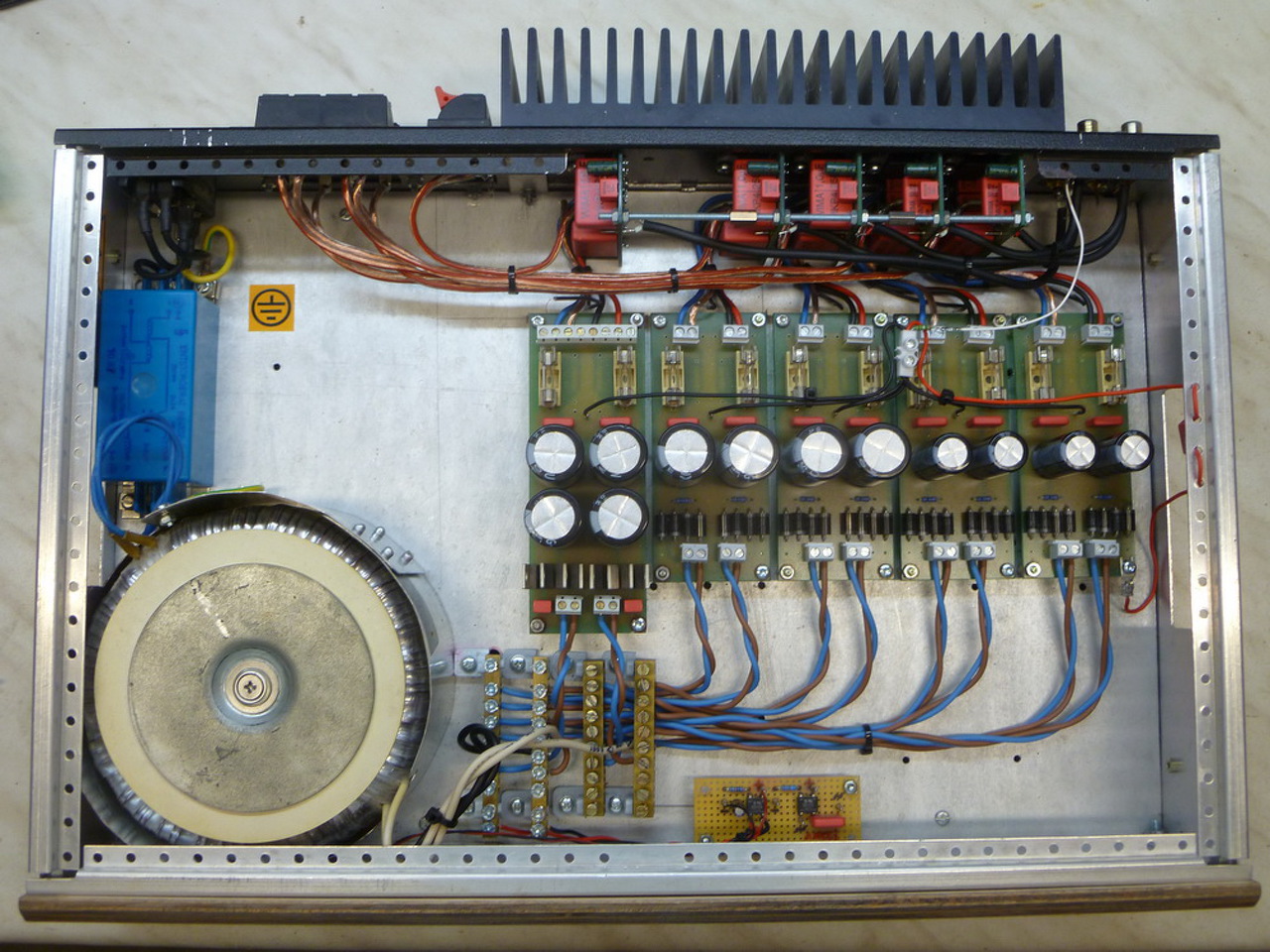 Sajnálom, én nem vagyok híve az ilyen pici kapacitásnak. Annak előbb, hogy több kicsiből legyen összerakva a telep. Én 2200µF-t csak a magas sugárzó meghajtásához használok jelenleg (külön végfok IC, külön táppal), mivel aktív rendszerem van (ld. kép).