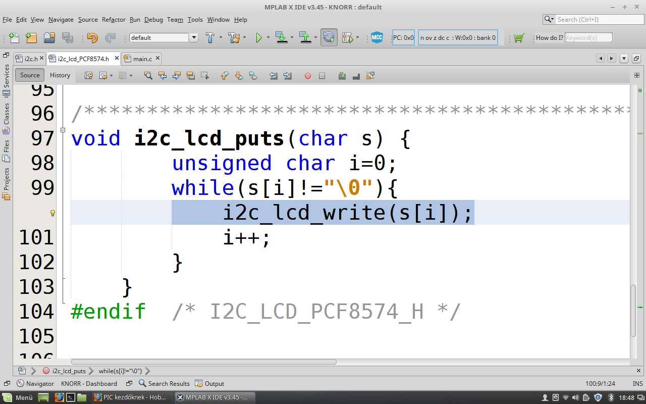 Elakadtam egy 18f47k40- es piccel és egy i2c -s LCD kijelzővel. (xc8 v1.38). Ez a program ment 16F es változaton. Egy sztring kiírása a probléma.