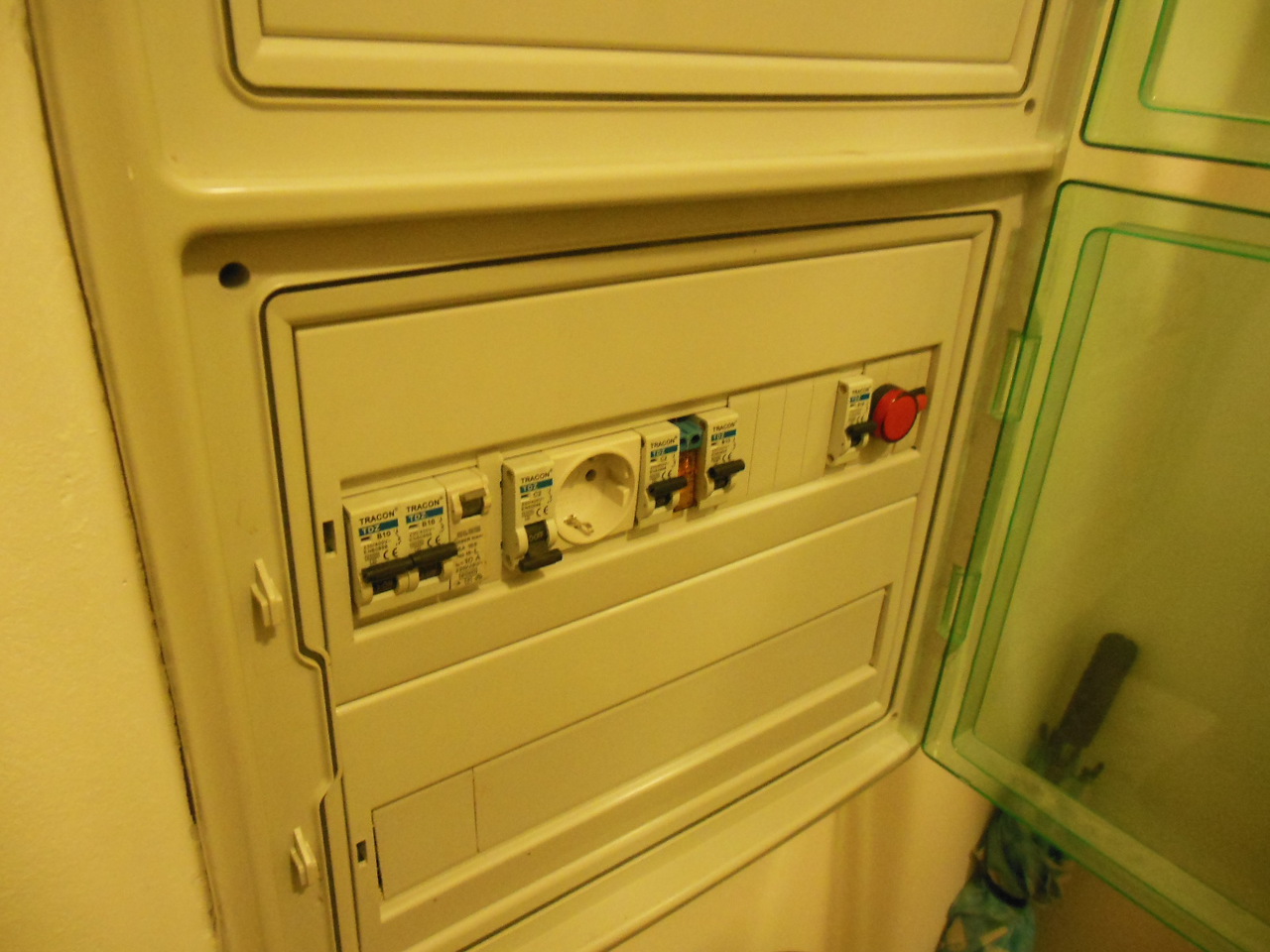 Igen az is lényeges különbség, hogy a mérőhely az épület külső homlokzatán, vagy jelen esetben, mivel 35 m-re van az épület az utcafronttól, így a bejárati kapu közelében lett elhelyezve. Az elosztószekrény pedig lakáson belül a bejárati ajtó közelében van .