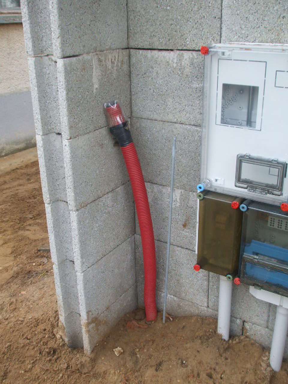 3x16 A és mellé 16A vezérelt, földkábeles bekötés. ( 2 x 38m 4x16 Alu ) )Mellette ami látszik védőcső, abban internet+tv, telefon, kapucsengő részére.