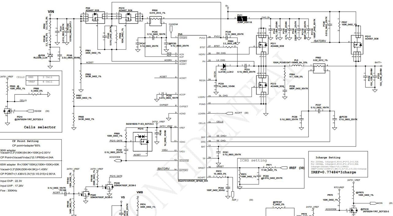 IC 28. lábán >4V kell legyen. Ellenőrizd, hogy nem-e szakadt PR61 és PR68, valamint közvetlenül az IC 5. és 8. lábain megvan-e a 2,7V (ha minden ok, ACGOOD alacsony) PR56 összes lábát ellenőrizd, valamint hogy az IC-hez eljusson. Ez az ellenállás ha szakadt, az IC túláram gyanújával lekapcsolja a betápot. Ezt ellenőrizheted az IADAPT lábon megjelenő feszültséggel. (20 szorosa kell legyen PR56-on mértnek) Ha minden ok, ACDRVnek (4. láb) kb 6Val alacsonyabbnak kell lennie mint PVCC (28. láb) (ráadásul nem árt, ha 17. - GND; 25. - GND; 17. - B+; 25. - B+ között nincs zárlat)