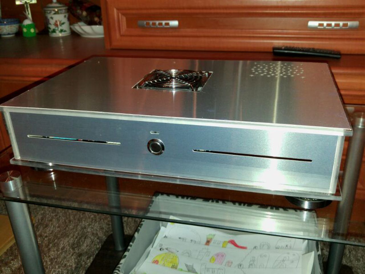 Ez a szép doboz és a funkciója miatt a PC is - megérdemelt volna egy nagyobb hűtőfelületes passzív hűtést, vagy Peltiert. Engem idegesítene mozizás közben a ventillátor. Amúgy egyedi megoldás. Tetszetős. Kis felirat még nem ártott volna neki.