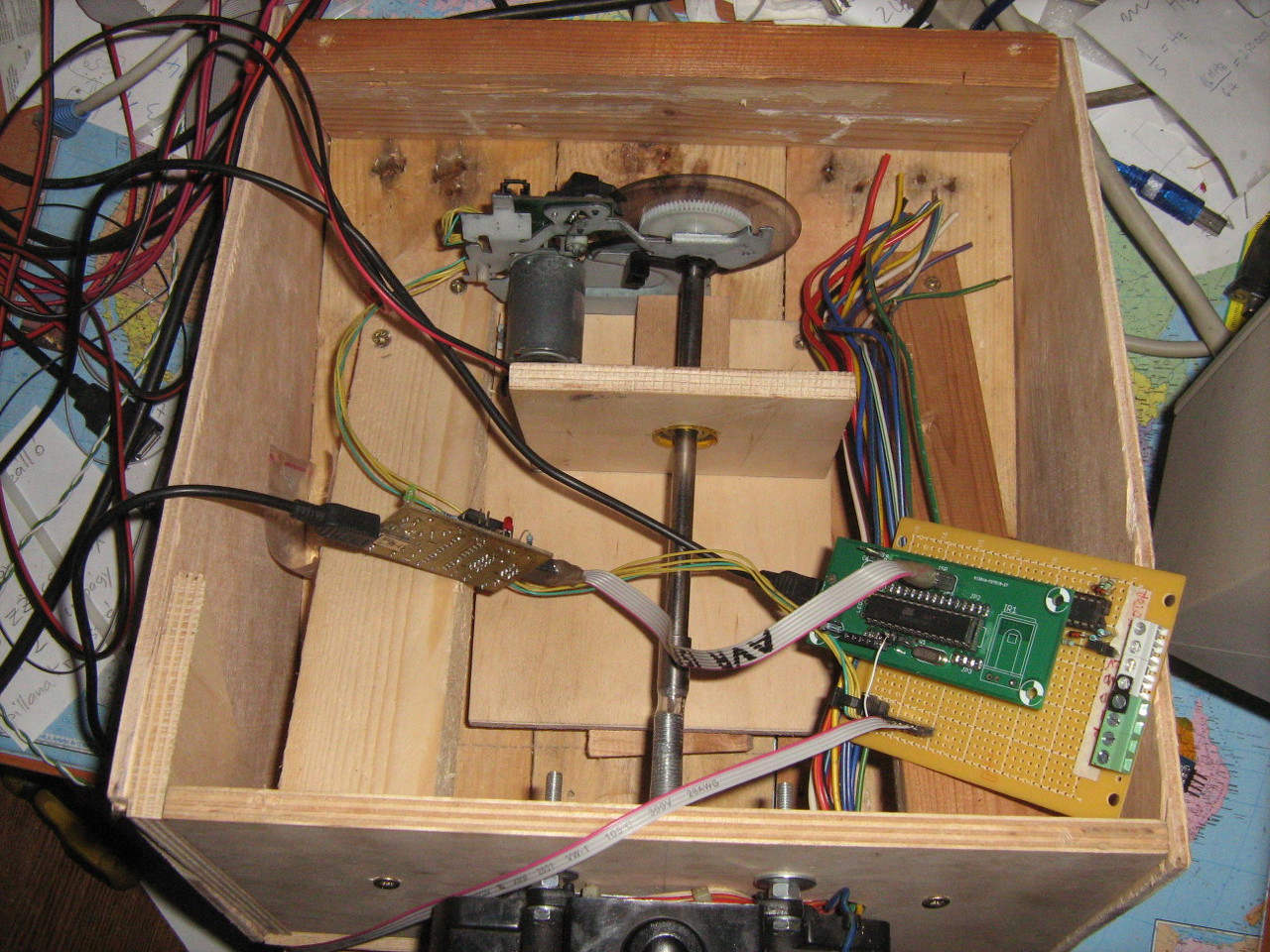 Számoltam egy kicsit. A lyukacsos tárcsa pontosan 20 teljes fordulatot tesz meg. Ez a teljes tartomány egyik végponttól a másikig. Van még egy fogaskerék, amelyik a teljes tartományban pontosan 3-at fordul. A kormány teljes működési tartománya 180 fok, tehát egy fél fordulat. Ha az optoszenzort arra a fogaskerékre tenném át, amelyik 3-at fordul a teljes tartományban, akkor az jó lenne. Ez a kormány 360 fokos elforgatásával pontosan 6-ot fordul. Ha 20-at fordulna, akkor a kormány is fordulna több, mint 3 fordulatot, gyakorlatilag kb 1200 fok lenne a teljes tartomány. Az már jó lenne. Nem egy negyed fordulat (90 fok) jutna egy-egy irányba, hanem 600.