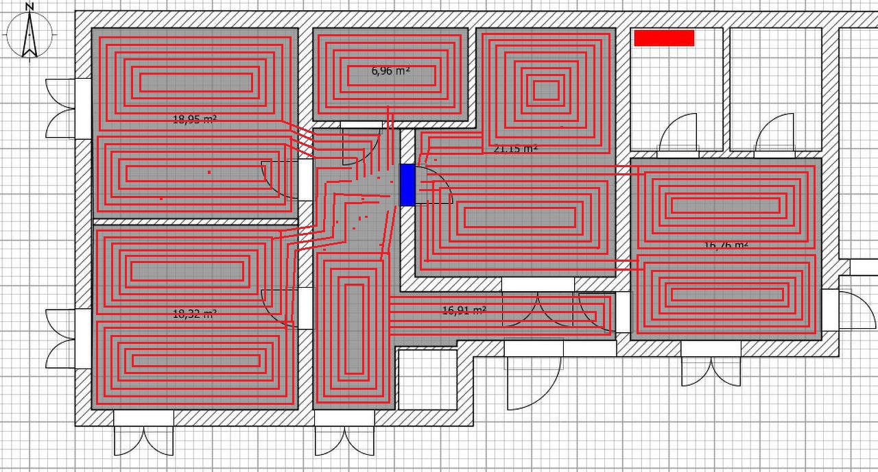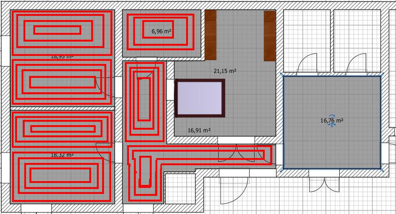 Tehát első két szobába (gyerekszoba-ebédlő) teljes felületen lenne fűtés. A folyosó is 2 körből állna. A fürdőszoba 1ből, De a hálószoba kialakitása érdekes lenne...Ti hogy oldanátok meg?