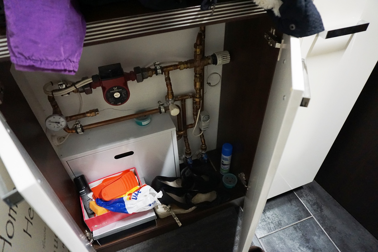 Csináltam egy képet a padlófűtés vezérlésről is, az az előszobaszekrényben van.