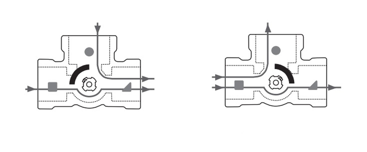 Az alábbi keverőszelep működéséről szeretnék valamit tudni, milyen állásban mit csinál? A padlófűtésemet szabályozta de elromlott az állítómotorja amit levettem róla. Ez elméletileg egy Junkers DWM20-as szelep, de a neten nem találtam róla semmit. A felső piros nyílnál jön a hőcserélőtől a víz, az alsónál megy a padlófűtés osztójába, a kéken kever vissza.