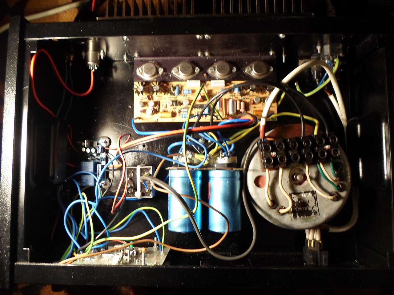 Sziasztok! Azért ha veszel egy erősítőt,kinyitod a házat és ezt találod benne,(iszap),és ennek ellenére működik,akkor az már valami.De nem hagytam ennyiben. (tudom,kábelek...)