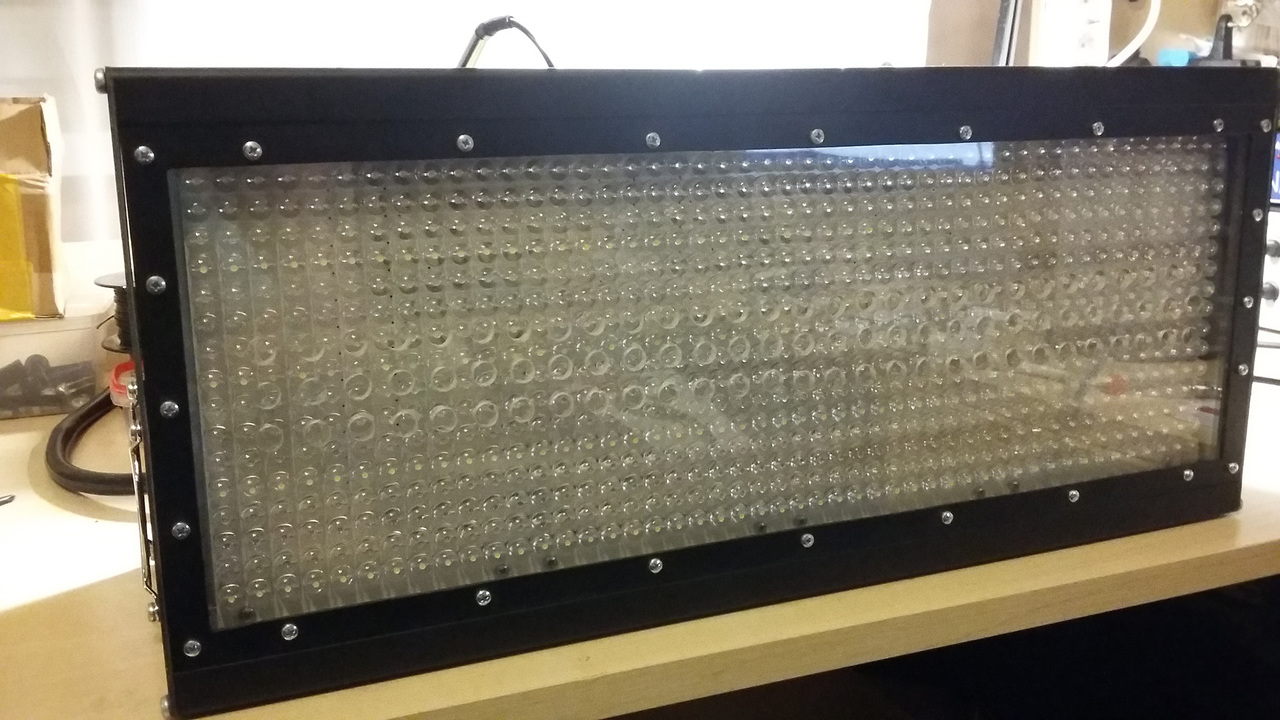 98%-ban elkészültem a LED-es stroboszkópommal. 768db fél wattos LED (piros, kék, zöld, fehér) foglal benne helyet.