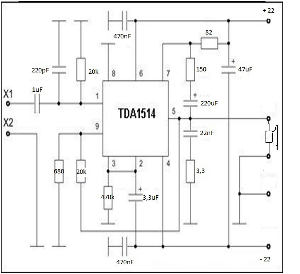 Bármilyen infót és tanácsot elfogadok a tda1514-el kapcsolatban. Természetesen rendelkezem hangsugárzóval több félével is, mindegyik 8 ohmos. Egy komplett erősítőt szeretnék építeni csupán hobbi célból. Az előerősítő és a hangszínszabályzó Alkotó által megtervezett ne5532+lm1036 lenne. A tápfeszültségem pufferelve +/-22 volt körül lenne (ekkora trafó áll rendelkezésre). Nem igazán akarok a wattokkal foglalkozni túlzottan, de amit lehet hozzunk ki belőle. Első körben tda7294-el akartam de aztán találtam itthon bontott tv-ből tda1514-et. Gondoltam első komolyabb erősítő építéshez ez is jó lesz. Ezek szerint az általad elkészített kapcsolás, teljesen a gyári TV rajz alapján készült? Az általam feltett rajz amin piros alkatrészek vannak részben hasonlítanak a TV-és kapcsoláshoz. Csak azt nem tudom mit befolyásolnának ezek a plusz piros, általam berajzolt alkatrészek az eredeti kapcsolási rajzhoz képest. Vagy egész egyszerűen ne keverjem össze a háromféle kapcsolási rajzot.