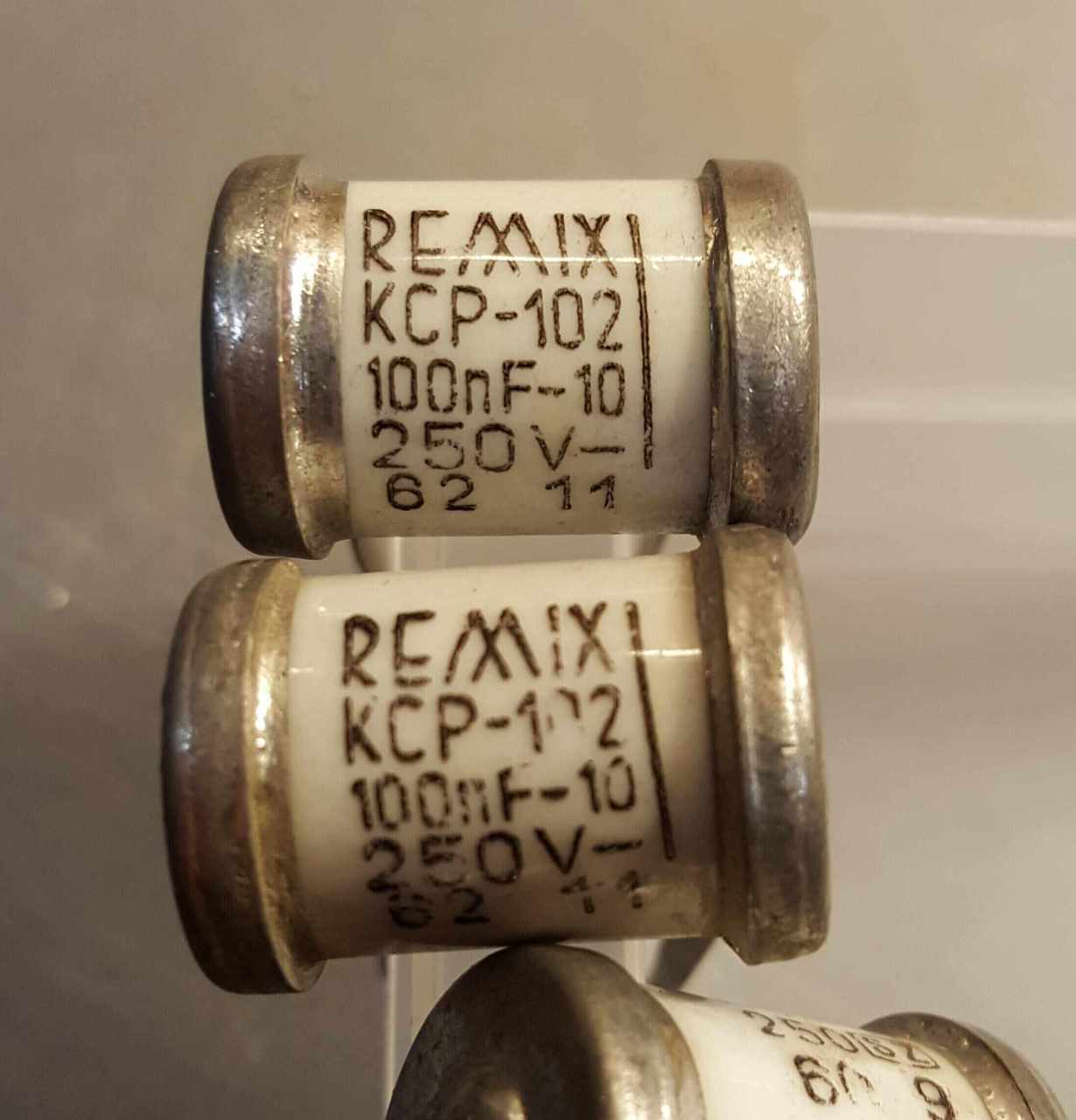 Hali! A remix porcelánházas példányból most kellett kivennem egyet a kékes tévémből. Nézem.. nincs kép. Nézem.. mérek.. Hát a boosterkondenzátor 28n/700V. Tönkrement.. a halálát valószínűleg a kora okozta. Az aluházas NCP-ket sem ajánlanám. Általában mind szivárog, így 50 év múltán. Az EAG, BEAG ilyen olyan keverőerősítőkben is ilyen van.. volt. Mindet úgy hozták hogy rövid időn belül izzik a cső.. betorzul a hang.. zúg mint az istennyila. Hát mondanom sem kell, sokuknál a csatolókondi hibájára volt visszavezethető. Ezeket a televízióból is rendre kimazsolázom (a kátránypapír társaival együtt) ,mert szivárognak.. kiszáradnak, átvezetnek, és vagy zárlatosak ennyi év után. Helyükre striloflex fóliakondenzátort teszek, ugyanis az olyan mint a szegénység.. örök életű.